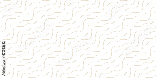 Trendy golden minimalist seamless pattern with diagonal wavy lines, thin stripes, liquid fluid shaped, waves. Abstract gold and white outline background. Simple linear texture. Repeating luxury design