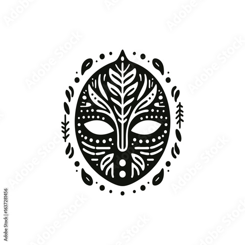Tribal masks for healers, herbal or leaf motifs