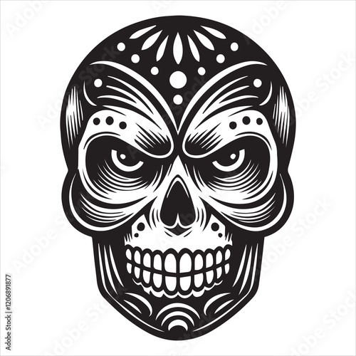 Tribal Skull Vector illustration, Scary Tribal Skull silhouette Design