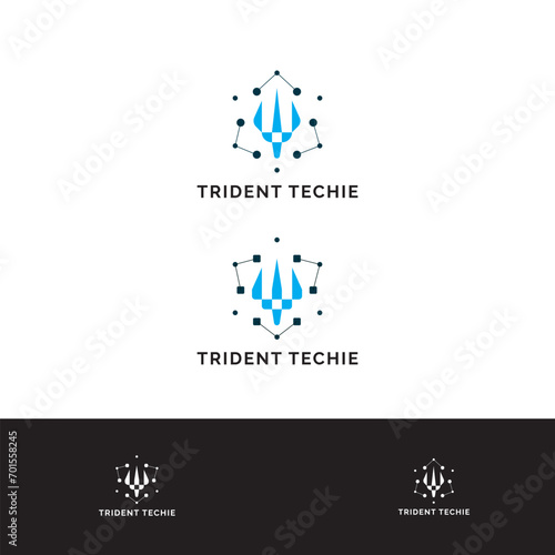 Trident Techie logo design with Poseidon Staff with dot connected icon logo design illustration