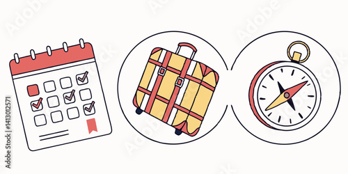 Trip Vacation Travel Planning Calendar Suitcase Compass Flat Illustration