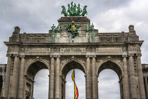 Triumphal arch (Arc de Triomphe) in Cinquantenaire park Brussels