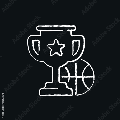 Trophy with ball chalk icon. Basketball. Vector black illustration