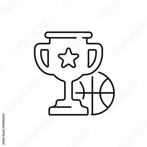 Trophy with ball linear icon. Basketball. Thin line customizable illustration. Vector isolated outline drawing. Editable stroke