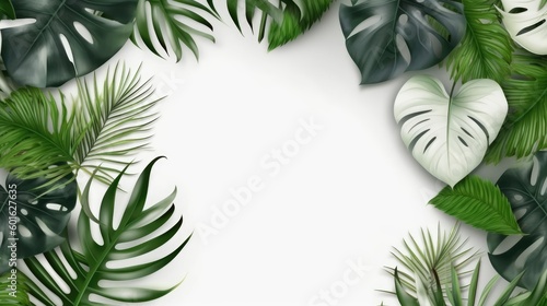 Tropical background with monstera leaves. Realistic illustration, Generative AI