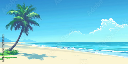 Tropical beach background banner. Palm tree along the beach of beautiful tropical water and sky great for a backdrop or banner with copy space
