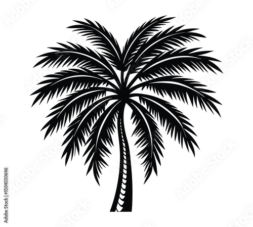 Tropical beach vector silhouette of a palm tree