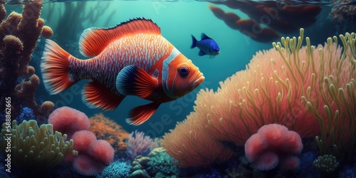 tropical fish and marine corals at the bottom of the sea, generative ai