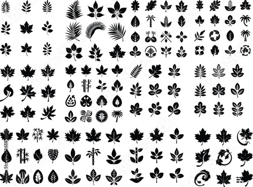 Tropical Leaves Set. Vector Illustration Collection of Tropical Leaf Silhouettes. Echotic Jungle Palm Leaves in Black Silhouette on a White Silhouettes tropical plants Tropical leaves silhouette