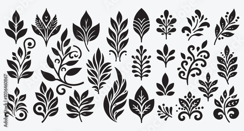 Tropical Leaves Silhouette Bundle Clip Art Vector Illustration Isolated on White Background