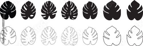 Tropical leaves silhouette set