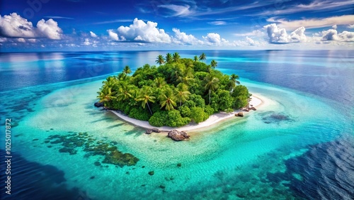 Tropical paradise island with big blue clear ocean from high angle view