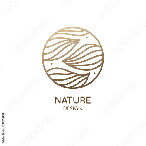 Tropical plant logo. Round linear emblem of flower