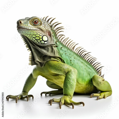 Tropical Reptile Elegance: Green Iguana Isolated on White Background. Generative ai