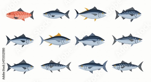 Tuna Fish Pattern Illustration, Seamless Marine Background Design