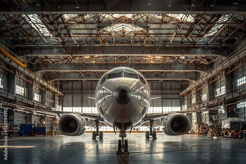turbulence flow and aerodynamics of an airplane in hangar.