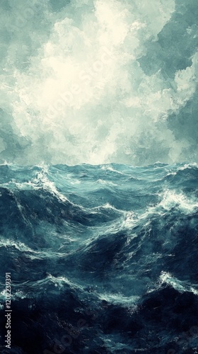 Turbulent ocean waves under a dramatic sky