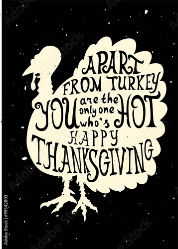 Turkey grungy card for Thanksgiving Day with quote. Lettering gr