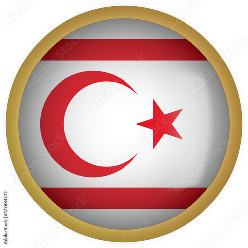 Turkish Republic of Northern Cyprus 3D rounded Flag Button Icon with Gold Frame