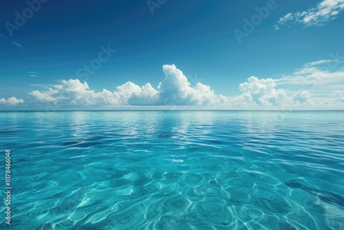 Turquoise deep water of ocean with ripples on sunny day in tropical country during summer time