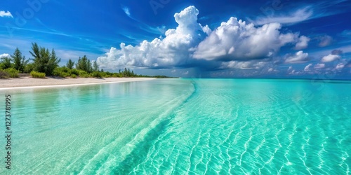 Turquoise water with a shallow sandy beach at Treasure Cay, treasure cay, island, treasure cay, island