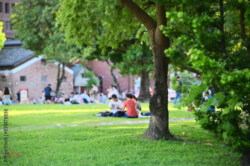 TW-08.26.23: Huashan 1914 Cultural and Creative Industry Park offers a sprawling green space in Taipei's bustling downtown, providing a tranquil retreat for picnics, kite flying, and leisurely strolls