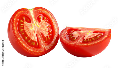 Twin variations of fresh tomato halves isolated on transparent background