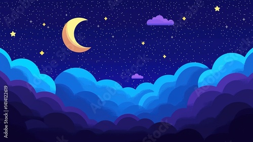 Twinkling starry night sky with crescent moon over colorful clouds digital art dreamy environment gigapixel quality