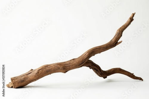 Twisted and turned driftwood branch against a pure white surface, textured, scenery, driftwood