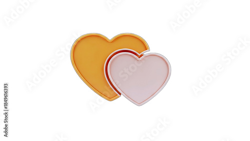 Two 3D Hearts Overlapping on White Background
