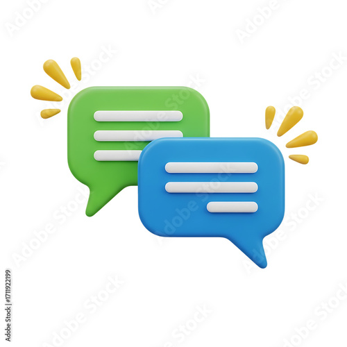 Two 3d speech bubbles with communication sparks isolated on a transparent background