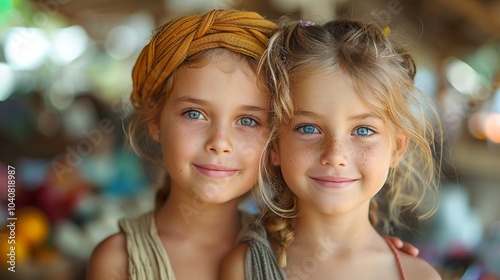 Two Adorable Sisters Smiling Together: A Close-Up Portrait