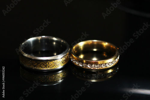 Two beautiful engagement rings with reflection