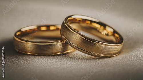 Two beautifully crafted golden wedding rings lie together, representing eternal love and commitment. Their smooth and shiny surfaces capture the light, showcasing their elegant design