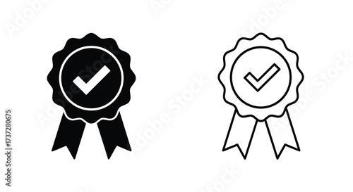 Two black and white ribbon badges with checkmarks a quality symbol