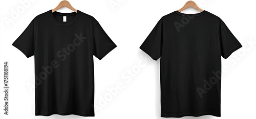Two black t-shirts on hangers
