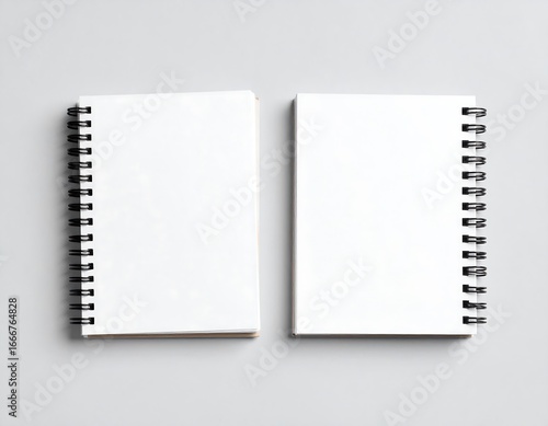 Two Blank Spiral-Bound Notebooks on Light Gray Background.