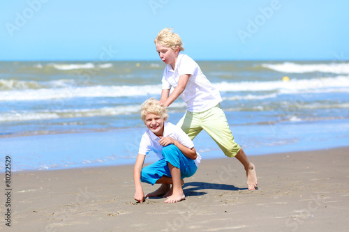 Two brothers enjoying summer vacation on the beach