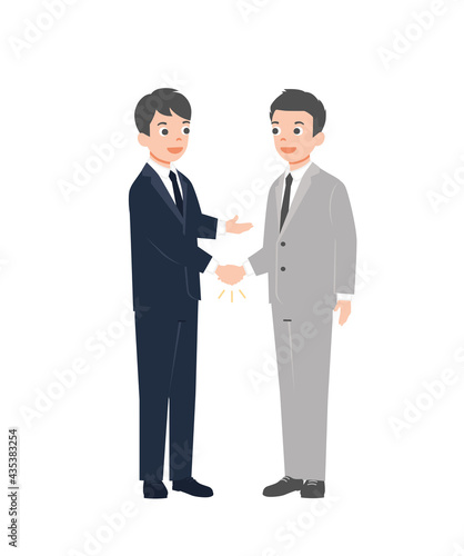 Two businessmen shaking hands. Business partnership and agreement, colleagues and cooperation, good deal and teamwork concept. Isolated on white background.