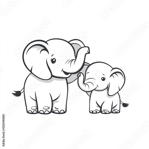 Two cartoon elephants, one large and one small, with a white background, for kids