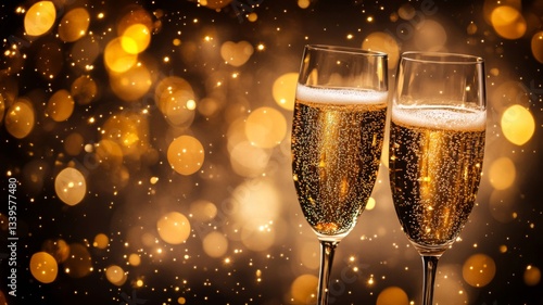 Two Champagne Flutes Against A Sparkling Golden Background