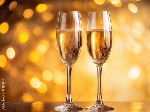 Two champagne glasses on a golden blurred background