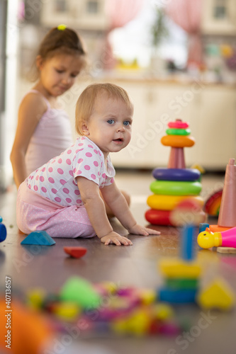 Two children play toys