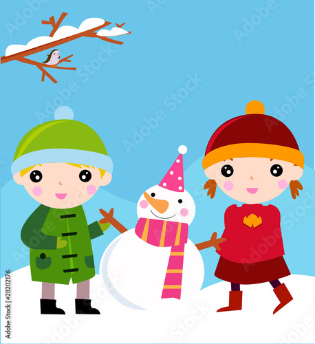 two children with snowman