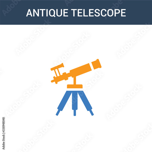 two colored Antique Telescope concept vector icon. 2 color Antique Telescope vector illustration. isolated blue and orange eps icon on white background.