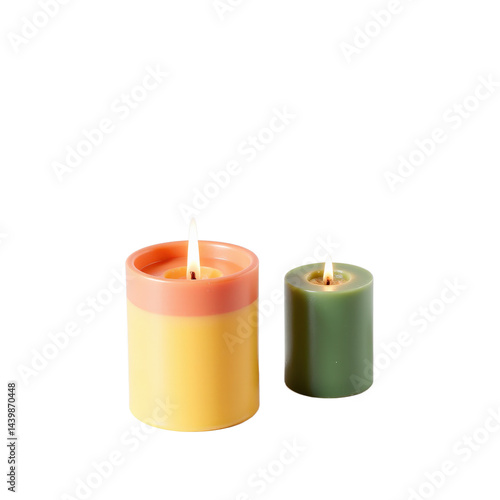 Two colorful candles with orange and green hues, perfect for home decor or gifting.