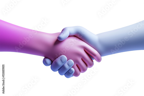 Two colorful cartoon hands shaking in friendly gesture on transparency background