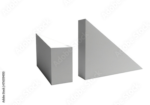 Two geometric prism shapes with sharp edges and flat surfaces isolated on transparent background