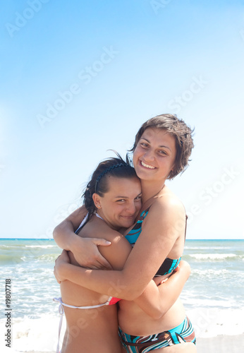 two girls having fun on the beach