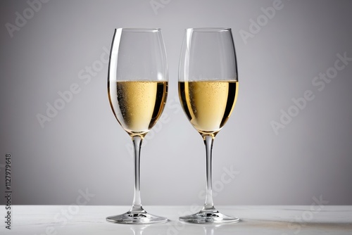 two glasses of champagne are sitting on a table